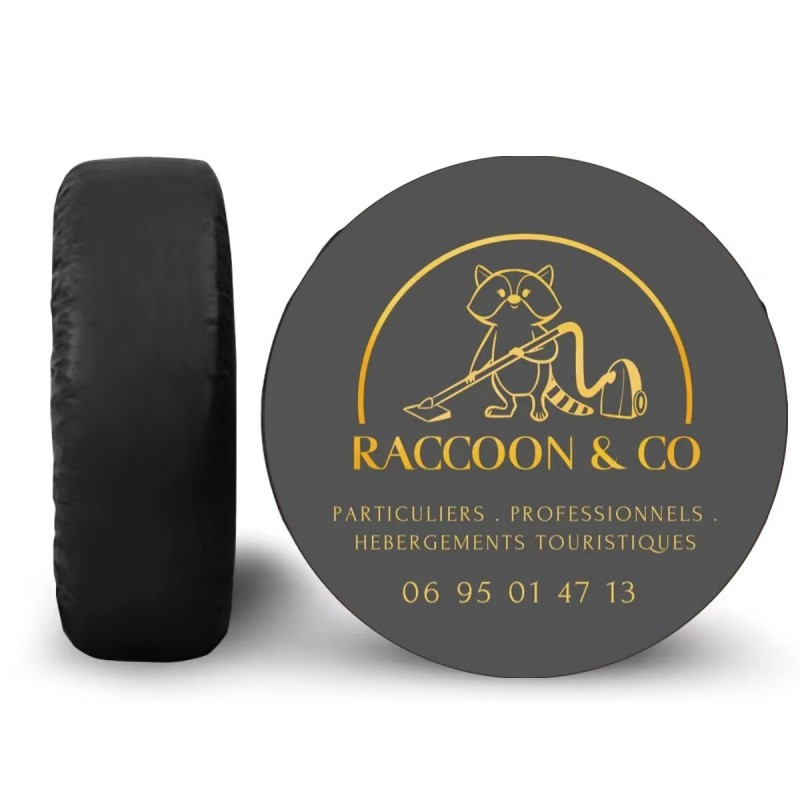 Slide it over the tire and secure with elastic hem, straps, or buckles.