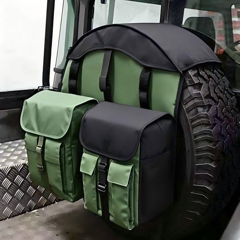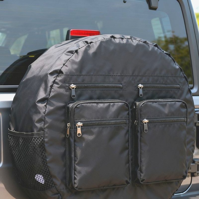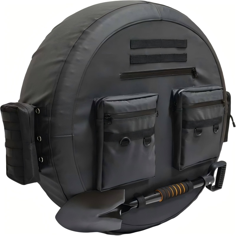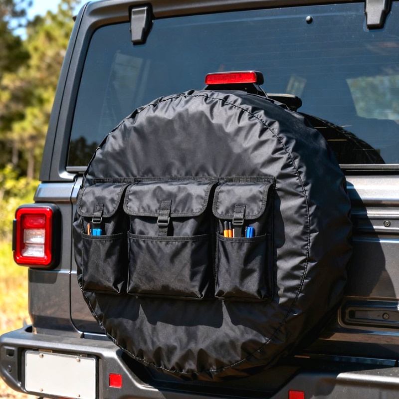 This heavy-duty spare wheel storage bag holds your tire, tools, and gear in one place. It fits Jeeps, trucks, and SUVs. It keeps your stuff dry, clean, and safe.